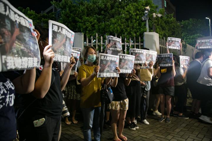 El pasado jueves, más de 500 policías entraron en las dependencias de Apple Daily, se incautaron de ordenadores y documentos, y detuvieron al editor y al director del periódico hongkonés, acusados de “conspiración para la confabulación con fuerzas extranjeras”, que podría acarrear hasta cadena perpetua bajo la citada ley.