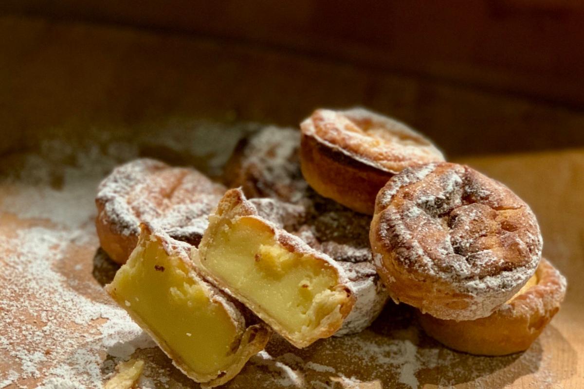 Sacar el hojaldre y hacer un rollo de 3cm de ancho por 40cm de largo y cortarlo en 15 porciones de 2cm. Pasarlos a moldes de mini magdalenas o de tartaletas medianas. Dejar que la masa se ablande en ellos hasta que estén flexibles y mojando los dedos pulgares en un cuenco con agua tibia, estirar la masa y darle forma del molde sobre pasando 5mm el borde del molde. La base no debe de pasar de 3mm de grosor. Llenar cada molde 3/4 de su capacidad con la natillas. Hornear los pasteles hasta que los bordes de la masa estén dorados, unos 8 o 10 minutos para los moldes de mini magdalenas 15 o 20 minutos para los moldes clásicos.