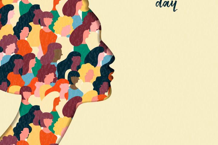 Happy Womens Day illustration. Paper cut girl silhouette cutout with women group inside, female crowd for equal rights march or peaceful protest concept.cienpies via Getty Images