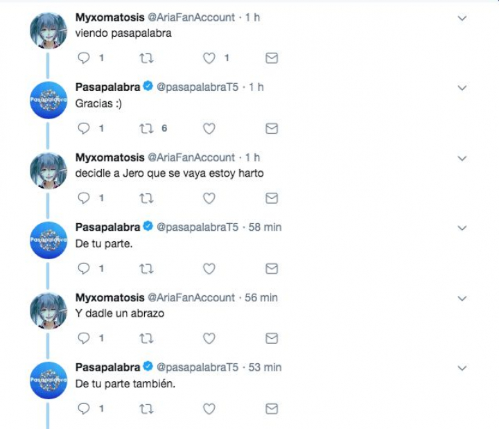 En el caso de este martes, el concurso presentado por Christian Gálvez ha servido para vivir un pique con intercambio de vaciles entre el usuario Myxomatosis y la cuenta oficial de Pasapalabra. Eso que el inicio ha sido bastante convencional.