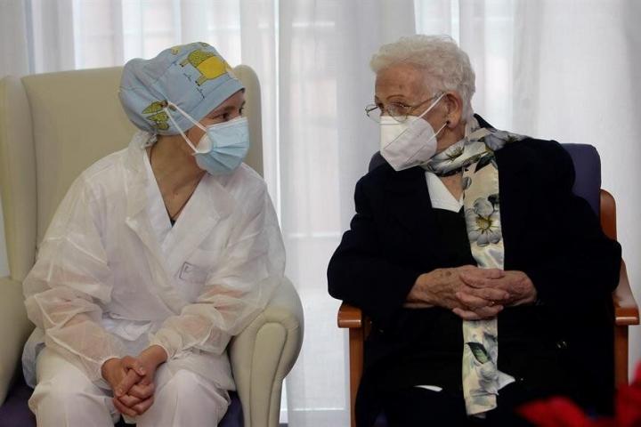 Araceli Hidalgo, de 96 años, y Mónica Tapias, de 40, han sido las primeras personas en ser vacunadas de coronavirus en España.