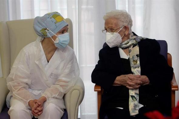 Araceli, de 96 años, primera persona en vacunarse de coronavirus en España.