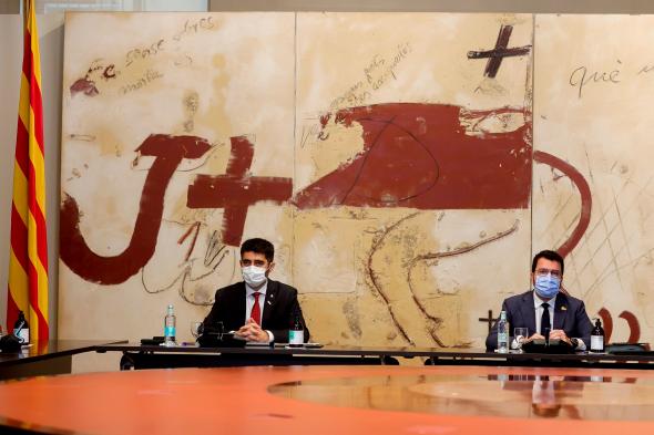 El órdago de Junts, además, supone poner en entredicho la posición y el poder del presidente de la Generalitat, que por primera vez ocupa un dirigente de Esquerra durante la actual etapa democrática. Una voladura en mitad del Consell del Govern. El propio líder de la Generalitat paraba la reunión y hacía una declaración a las 13.30 en la galería gótica. El mensaje de manera contundente: Junts fuera de la Mesa mientras no enviara conssellers. Por parte de ERC se sentarán Aragonès y los consellers Laura Vilagrà y Roger Torrent.