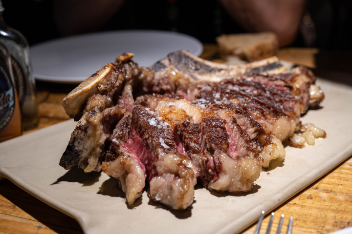 La propuesta es clara, tiran para la tierra, cocina vasca de principio a fin, versionan su cocina tradicional, donde su fuerte sin las verduras... ¡qué manjar! Para ser concretos, mi comida empezó con unas gildas Joxefa 2.0, una versión tremedamente original de la gilda donostiarra. Le siguieron unas croquetas de Stilton, el queso azul inglés más famoso, y una de las mejores ensaladas que me he tomado últimamente, con anchoa, tomates asados, ventresca y pan soplado relleno de mahonesa de erizos, alucinante. Como plato principal llega la txuleta de vaca, de cárnicas Goya, sin duda lo menos destacable de la velada, acompañada de unos pimientos del piquillo asados, como manda la tradición. El postre fue el tradicional pastel vasco de crema de Rafa Gorrotxategi.