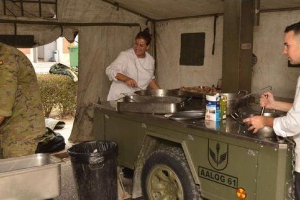 La gracia está también en los fogones: en vez de un plató, trabajarán en un remolque cocina Arpa 2000, la herramienta móvil que emplean los miembros de las Fuerzas Armadas para estos menesteres.
