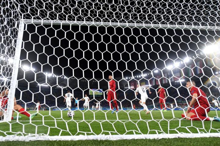 Los de Mancini no necesitaron ni diez minutos para esstablecer el 0-1 en una jugada de Berardi que Demiral introdujo en su propia portería con el pecho. Immobile, en su afán por marcar, logró el segundo de la noche en un rechace tras una buena triangulación dentro del área. La jugada, iniciada por Barella, dejó claro que Italia se estaba gustando.