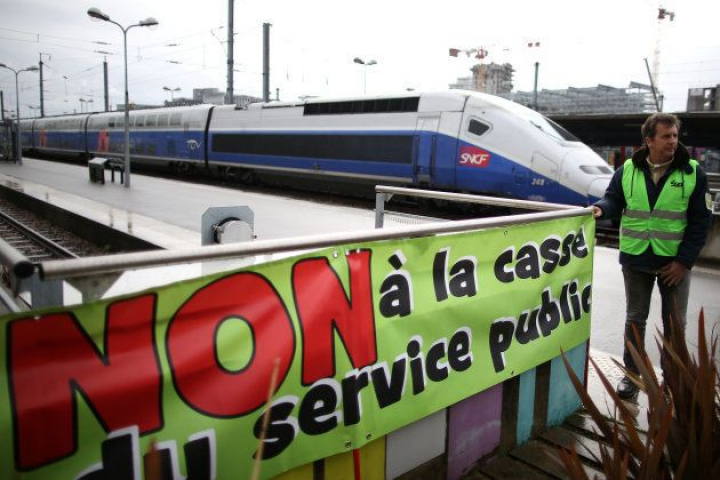 Los trabajadores ferroviarios tratan de poner en jaque al presidente francés y obligarle a dar marcha atrás en la privatización del sector.