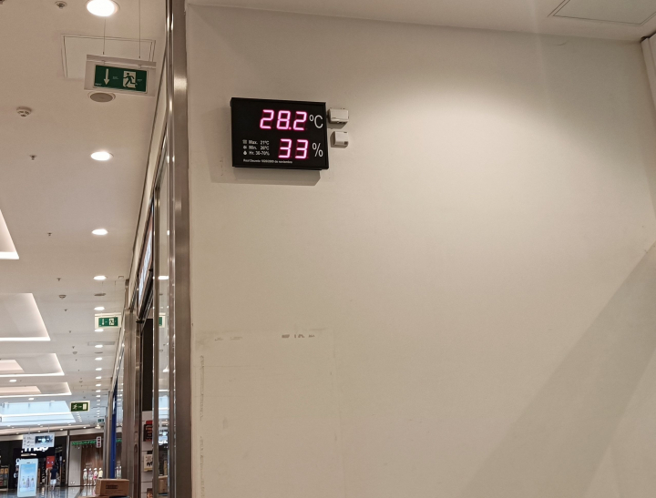 La temperatura de la planta baja de este centro comercial en esos momentos es de 28.2º.