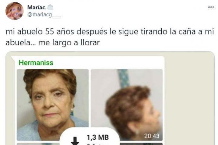 El último que ha tenido mucha repercusión ha sido el mensaje que le dejó el abuelo de una tuitera a su mujer. “Mi abuelo 55 años años después le sigue tirando la caña a mi abuela... Me largo a llorar”, escribió la usuaria María adjuntando la conversación del grupo de WhatsApp.