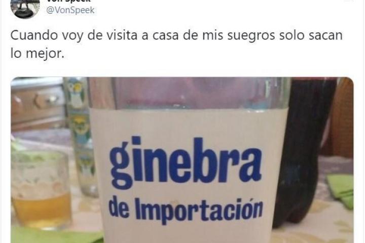 Pero el usuario de Twitter @VonSpeek lo ha logrado. Según ha compartido en su cuenta, sus suegros sacaron para tomar en casa una ginebra de importación... marca Continente.