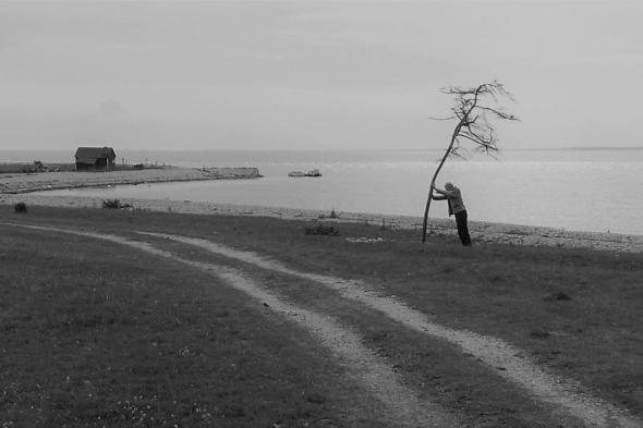 Una vez que los títulos de crédito han terminado con el acompañamiento de Bach, aparece un padre con su hijo queriendo plantar un árbol al lado de la playa. “Ven aquí, ayúdame hijo mío. ¿Sabes? Érase una vez un hombre viejo que vivía en cierto monasterio. Plantó un árbol seco en la colina, justamente como lo hacemos nosotros, y ordenó a sus discípulos que regaran el árbol cada día hasta que brotara la vida… Cada día por la mañana llenaba un cubo de agua, subía a la colina y regaba el árbol por la tarde, hasta que pasados tres años escaló la colina y el árbol estaba lleno de flores”.