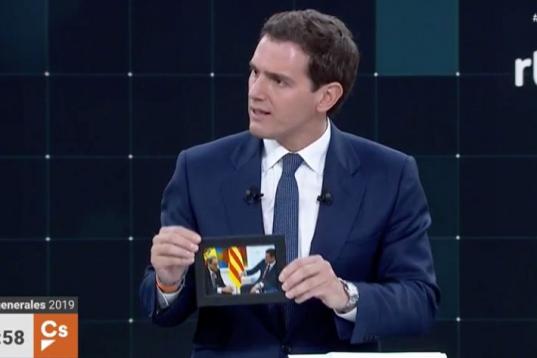 Pero, ¿dónde está la bandera en este debate? Rivera aprovechó el momento en el que habló de la "tarjeta sanitaria única" para sacarla. Prometió que si gobernaban llegaría a casa de los espa...