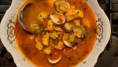 Poner el pollo a cocer en una olla con el puerro, 1 cebolla, 1 diente de ajo y 2 litros de agua durante 30 minutos. Escurrir todo, recuperar el caldo y el pollo. Deshilachar el pollo y reservar.