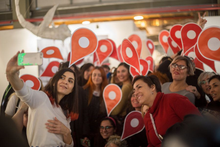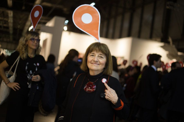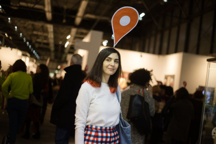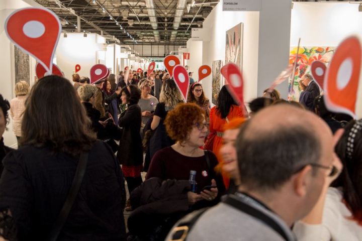 La frase la repetía este miércoles por la mañana la artista visual Yolanda Domínguez en la inauguración de la feria ARCOmadrid 2018. Pero también la podría haber dicho cualquiera de las 60 artistas que, como ella, se pasearon por la jornada inaugural de la feria de arte contemporáneo con un localizador rojo como el de Google Maps sobre la cabeza.