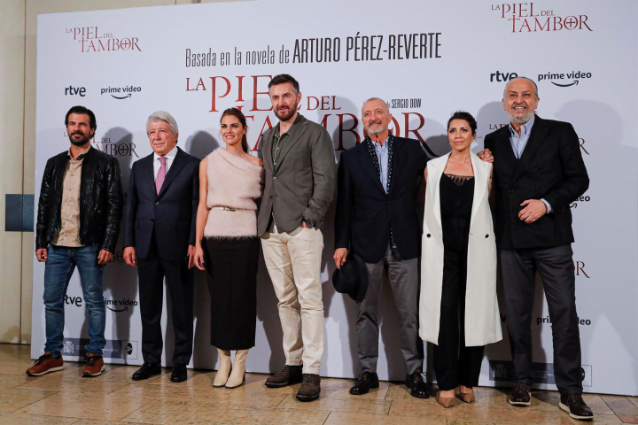 A pesar de rodarse en Sevilla y con gran parte del elenco formado por actores españoles, La piel del tambor se ha grabado en inglés, algo que ha extrañado a algunos pero que para Pérez-Reverte no tiene nada de raro. “La película se ha rodado en inglés para que tenga una proyección exterior y eso le da fuerza. Es una película que, aparte de lo que haga en taquillas, en Amazon y en los circuitos de plataformas va a tener un recorrido extraordinario. Yo creo que es una gran película para Amazon precisamente”, ha defendido ante los medios el académico de la RAE.