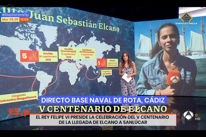 Ha añadido la presentadora que los dos marinos lograron “sin haberlo pretendido” dar la vuelta al mundo. La expedición, ha contado, partió de Sevilla con destino a las Indias “a través de un canal que conecta los dos océanos, el Atlántico y el Pacífico y que Magallanes estaba empeñado en que existía”.