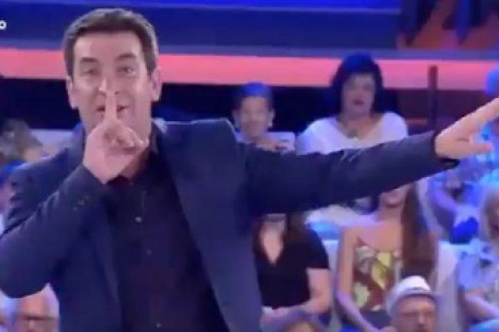 Y acto seguido corrió hacia el centro del plató entre risas. "¡Uy casi! ¡Casi me ha pillado!", dijo el presentador. Falló... por los pelos.