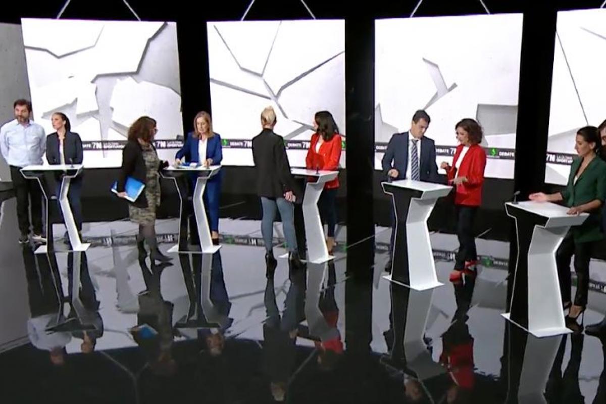 La imagen que estamos viendo es muy diferente a la del debate de los cinco grandes candidatos de este lunes. Se trata de un debate “libre y abierto” en el que “las normas han sido puestas por los periodistas”, según adelantó la moderadora.