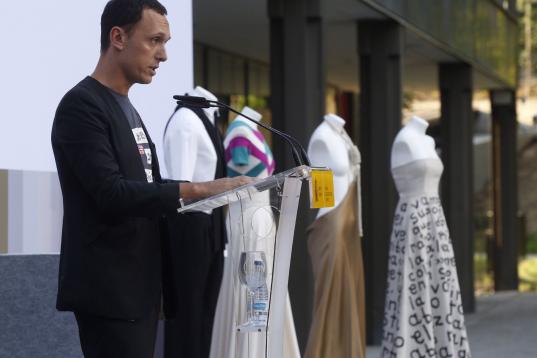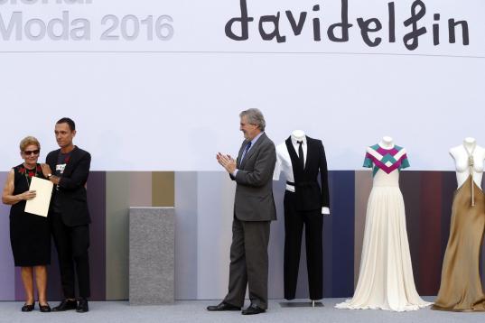 Antes que él (y antes de la aplaudida aparición en el escenario de María González) dijo unas palabras Modesto Lomba, presidente de ACME, que destacó que Delfín "supo unir género y generaciones, lo comercial y lo artístico, gracias a su extraordinario talento, y con su sello personal marcó un antes y un después en la moda española".