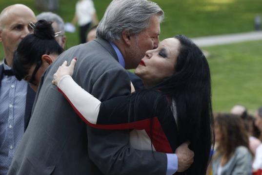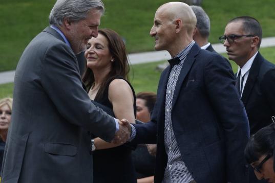 Fue ella la penúltima en salir al escenario del jardín delantero Museo del Traje, habilitado con cuatro icónicos diseños del creador malagueño. Sólo llegó el último, en el puesto de honor, el ministro de Cultura, Íñigo Méndez de Vigo, que destacó en un sorprendente y bello discurso el trabajo de Delfín. "Era un gran artista, un gran creador. Todo lo que logró fue gracias a ese talento vanguardista [...] junto a grandes dosis de trabajo", destacó Méndez de Vigo, que recordó la especial relación del de Málaga con su amiga y socia, la también recientemente fallecida Bimba Bosé, y su vinculación con el arte en todos los sentidos, desde la música al cine.