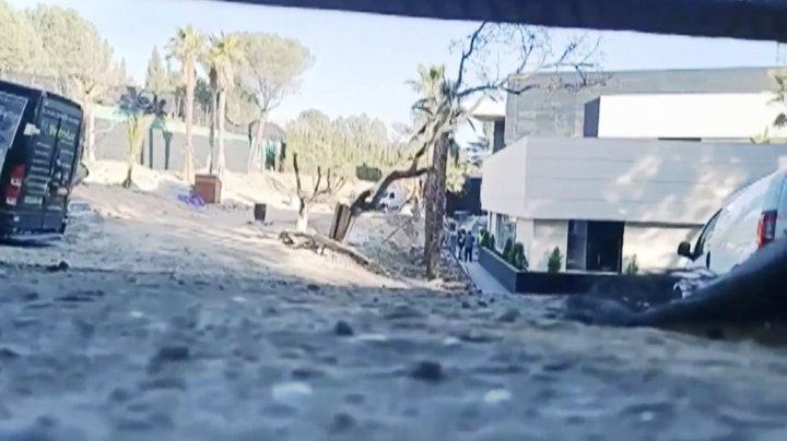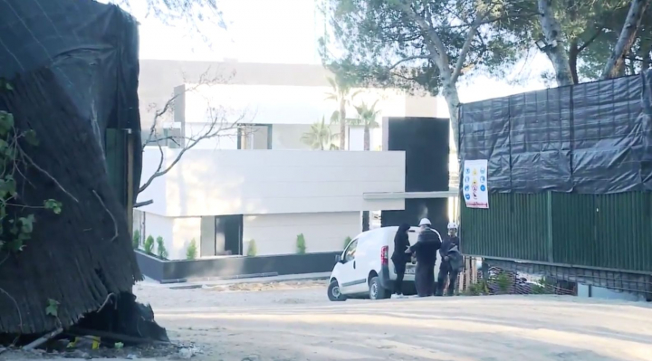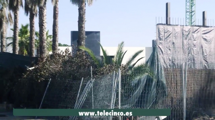 La casa está rodeada de muros altos y ha sido el propio futbolista, que se encontraba dentro del hogar mientras el reportero de Telecinco grababa, el que ha revisado personalmente las obras.