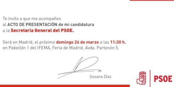Así es la invitación de Susana Díaz a la presentación de su candidatura