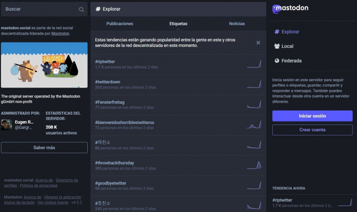 Entre los trending topic de la red social del pájaro azul se han colado algunos términos como #RIPTwitter, Mastodon, Elon Musk, TwitterOFF, TwitterDown y hasta Tuenti, algo que ha convertido a esta desconocida red social en la principal alternativa a Twitter.