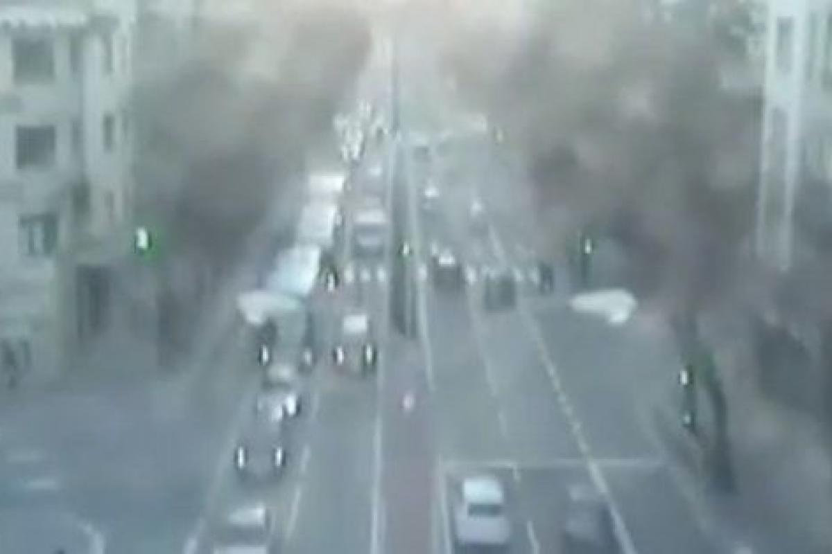 Un temblor de pequeña magnitud pero que ha dejado esta imagen captada por una cámara de tráfico de Pamplona: