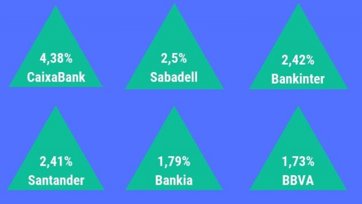 Las entidades financieras tienen un gran peso en el Ibex 35. La suma de Santander, BBVA, CaixaBank, Bankia, Sabadell y Bankinter representan aproximadamente el 35% del índice. La correlación suele ser directa: si suben los bancos, también lo hace el Ibex, y viceversa.