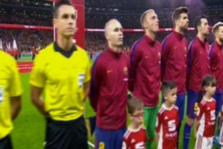 El Sevilla-Barcelona ha empezado con polémica. Momentos antes del inicio del encuentro, justo cuando sonaba el himno nacional, miles de personas lo han pitado mientras sonaba.