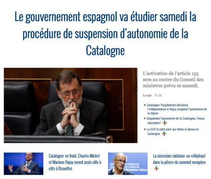 Euronews, por su parte, explica que "los separatistas de Cataluña no han mostrado signos de abandonar su oferta de independencia" y que "el líder Carles Puigdemont ha dicho que no solo no retrocederá, sino que seguirá adelante con una declaración de independencia más formal". Por eso, dice, España recurre a un "oscuro" artículo de su Carta Magna para limitar el autogobierno de Cataluña, un texto, el del 155, que explica en una pieza especial.