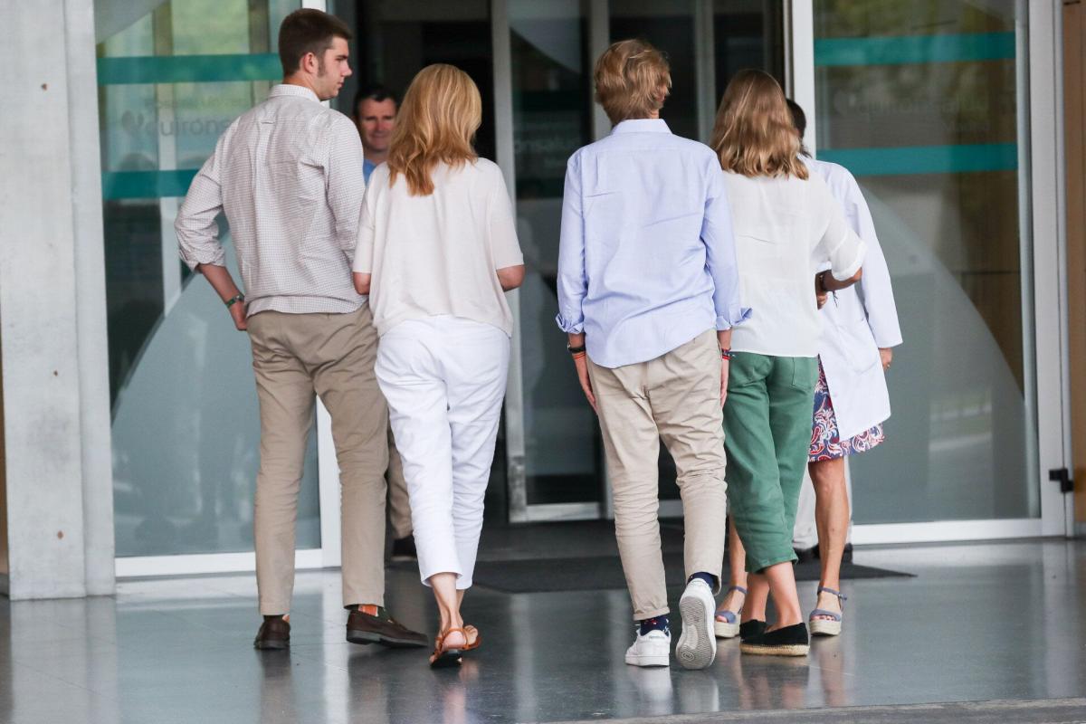 La hija del monarca ha llegado pasadas las tres de la tarde al centro sanitario —en un vehículo en el que también viajaban sus hijos Juan Valentín (19 años), Miguel (17 años) e Irene (14 años)—, y se ha ido apenas media hora después.