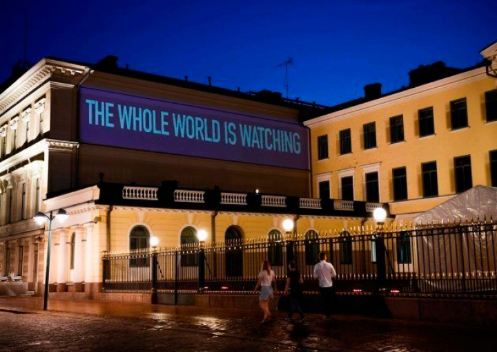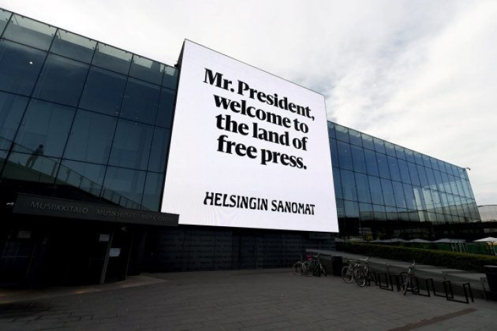 Por la ciudad se pueden ver vallas publicitarias con el mensaje "Señor presidente, bienvenido a la tierra de la libertad de prensa". Esta iniciativa ha sido promulgada por el principal diario finlandés, Helsingin Sanomat, que también ha publicado titulares sobre las diferentes políticas de ambos líderes que atentan contra la libertad de prensa.