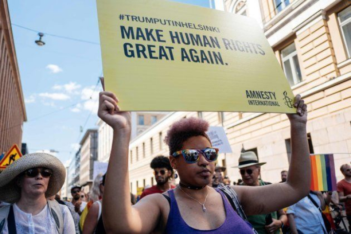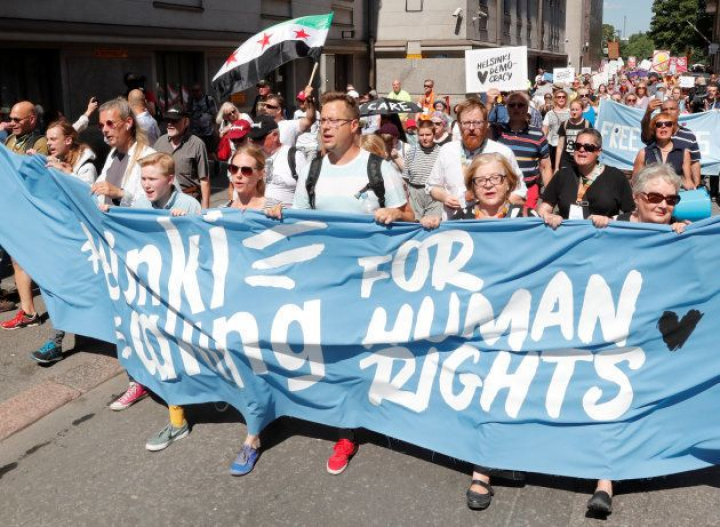 El centro de la ciudad ha acogido a unas 2.000 personas que han denunciado la política migratoria de Trump, las guerras en Siria y Ucrania, la falta de libertades en Rusia o la homofobia alentada por el Kremlin. Hay otra marcha prevista para el mediodía bajo el lema "Helsinki contra Putin y Trump".
