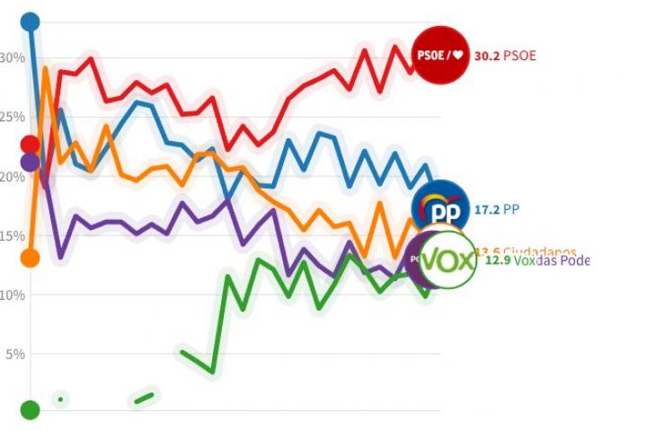 Recopilamos los datos de estimación de voto a los cinco grandes partidos en las elecciones generales.