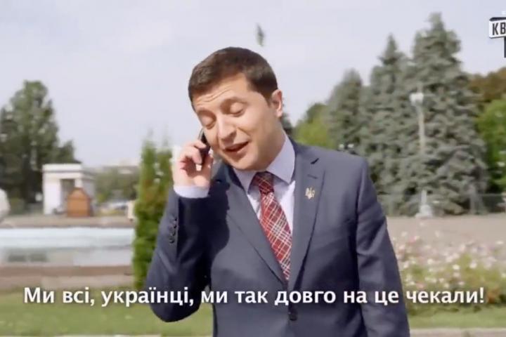 El hoy presidente ucraniano interpretó a un profesor convertido en mandatario. Ahora se rescata la escena en la que Merkel le llama y le anuncia la adhesión... con sorpresa.