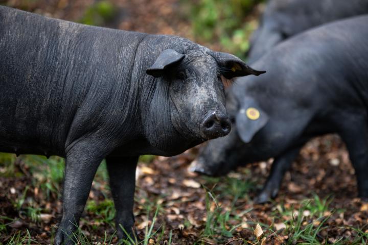 “Para ser certificado como etiqueta negra o roja, un cochino tiene que tener 0,75 hectáreas en las que campar. Nosotros pedimos a nuestros ganaderos 2 hectáreas”, señala María Castro, directora de comunicación de la empresa.