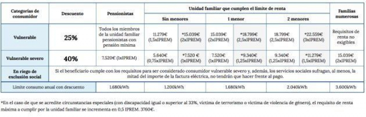 El bono social eléctrico es un descuento aplicado a los consumidores vulnerables para pagar el recibo de la luz. El descuento es del 25% o del 40%, según el nivel de renta.