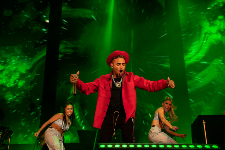 Este cantante puertorriqueño sabe conectar desde el primer minuto con la legión de fans que sigue su actuación. Transmite una energía frenética con sus incesantes movimientos y constantes guiños al público (especialmente a “las muchachotas”), al que anima a que le acompañe con las palmas o saltando. Pide “bullas” (que la gente grite) constantemente: ”¡Una bulla para los hombres que mandan en casa!” (...) ”¡Una bulla para las mujeres solteras!”. En un momento se arranca a cantar la ranchera El rey, de José Alfredo Jiménez, y prácticamente toda la audiencia le sigue en un multitudinario coro. Para cerrar elige repetir tema y canta Rebota, con el que la gente rompe a saltar. El suelo tiembla y se incendia la noche que acaba de caer sobre el Flow Fest.