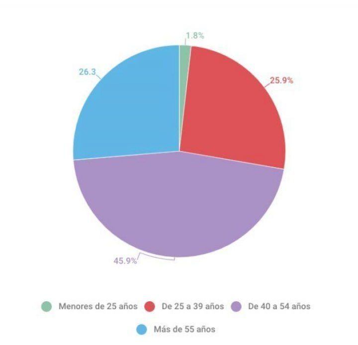 - Más de siete de cada diez trabajadores autónomos tienen más de 40 años. El tramo de edad donde se concentran el mayor número de autónomos es de 40 a 54 años. En concreto, el 45,9% de ellos. Solamente el 1,8% son menores de 25 años.