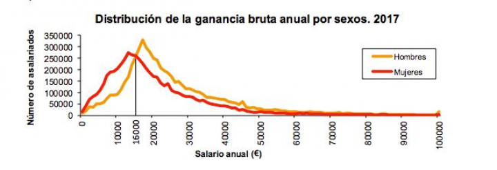 A pesar de las continuas promesas electorales, la brecha salarial de género todavía persiste en el mercado laboral. Los hombres ganaron 26.391,84 euros al año de media, mientras que el sueldo medio de las mujeres fue de 20.607,85 euros. El salario de ellas supone el 78,1% de lo que ganaron ellos. “Esta diferencia entre la remuneración de hombres y mujeres se reduce si se consideran puestos de trabajo similares (misma ocupación, tipo de contrato, tipo de jornada, etc.)”, señala el INE.