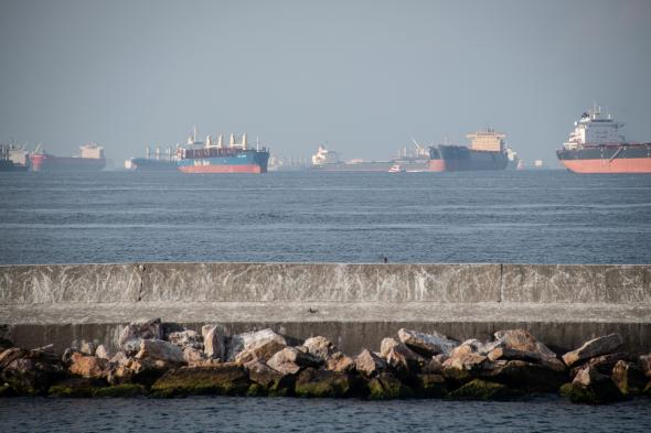 Debido a las regulaciones de paso, es habitual que decenas de buques esperen en el mar Negro antes de pasar el estrecho.