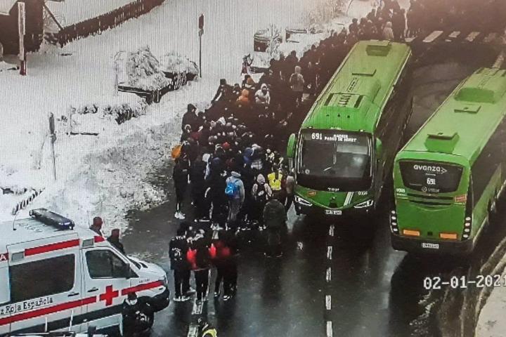 El equipo de Emergencias 112 de la Comunidad de Madrid ha coordinado la asistencia a un grupo de unas 150 personas que esperaban el autobús en Cotos debido a la situación de frío y la nieve, ha informado un portavoz de Emergencias 112.