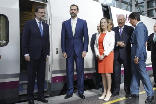 El rey Felipe VI y el presidente del Gobierno inauguran la primera línea de alta velocidad entre Madrid y Ourense de un proyecto que ha costado más de 9.000 millones de euros.