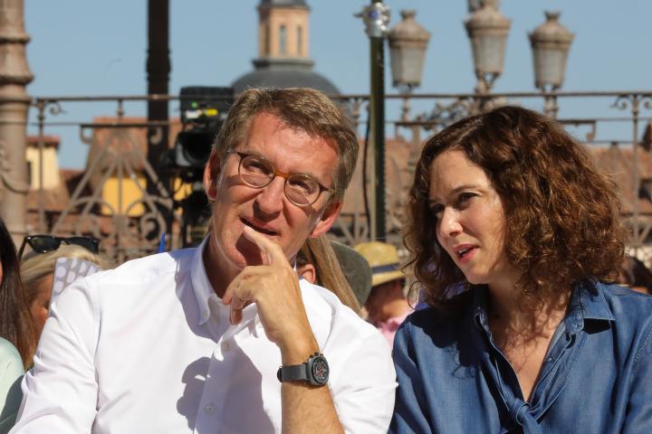 La presidenta de la Comunidad de Madrid, Isabel Díaz Ayuso, ha salido este sábado en defensa del presidente del Partido Popular, Alberto Núñez Feijóo, y no ha dudado en criticar lo que está haciendo el presidente del Gobierno, Pedro Sánchez, con el dirigente popular.