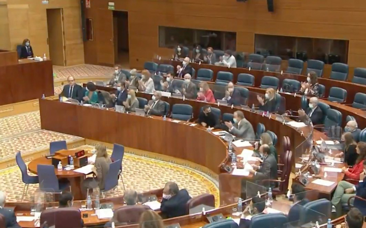 Ángel Gabilondo, portavoz del PSOE en la Asamblea de Madrid, ha levantado el aplauso de gran parte del hemiciclo, incluidos miembros de Podemos, con el final de su intervención durante la sesión de control al Gobierno de Isabel Díaz Ayuso.