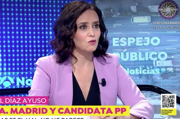 En dicha entrevista, ha vuelto a repetir que considera que Pablo Iglesias, candidato de Unidas Podemos, “es el mal”. “Lo he dicho siempre, no me parece una buena persona”, ha agregado Ayuso.