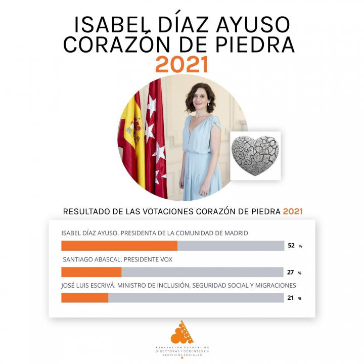 La presidenta de la Comunidad de Madrid se hace con el galardón 'Corazón de Piedra 2021'.