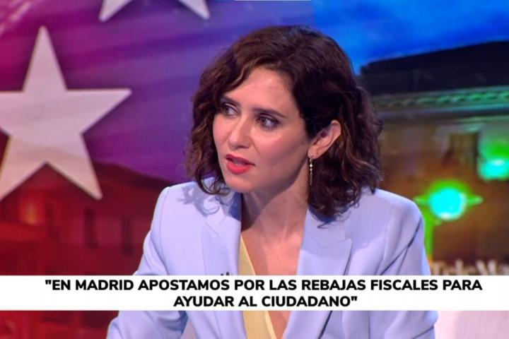 La presidenta de la Comunidad de Madrid, Isabel Díaz Ayuso, ha sido entrevistada este miércoles en Telemadrid y ha tenido que hacer frente a una advertencia de la secretaria general de AMYTS Madrid, Ángela Hernández.