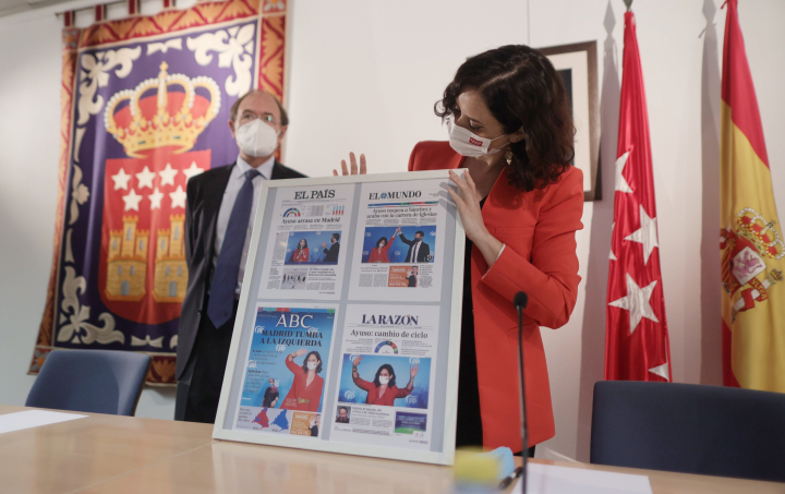 Pasadas las nueve y media, cruzaba sola la galería de la Asamblea de Madrid. Con paso firme, chaqueta roja a lo bandera regional y vestido negro. En la puerta de cristal la esperaba Alfonso Serrano, uno de sus hombres de máxima confianza. Isabel Díaz Ayuso regresa tras su victoria arrolladora e instaurando nuevos tiempos en la Cámara de Vallecas.